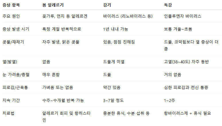 봄 알레르기 vs 감기 vs 독감 – 헷갈리는 증상 비교